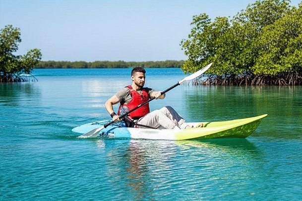 Explore Abu Dhabi’s beautiful mangroves as you paddle through calm channels and shaded lagoons on a relaxing guided tour.