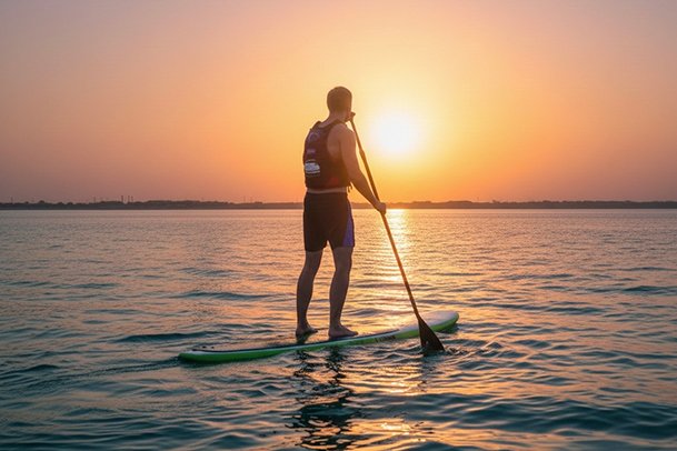 Stand-up paddling offers a peaceful, relaxing moment on the water while improving balance and enjoying nature.